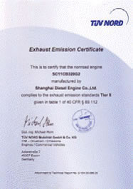 Reaching Euro II emission with the State certification; meeting Tier1 and Trier2 emission requirements, with the TUV certification.